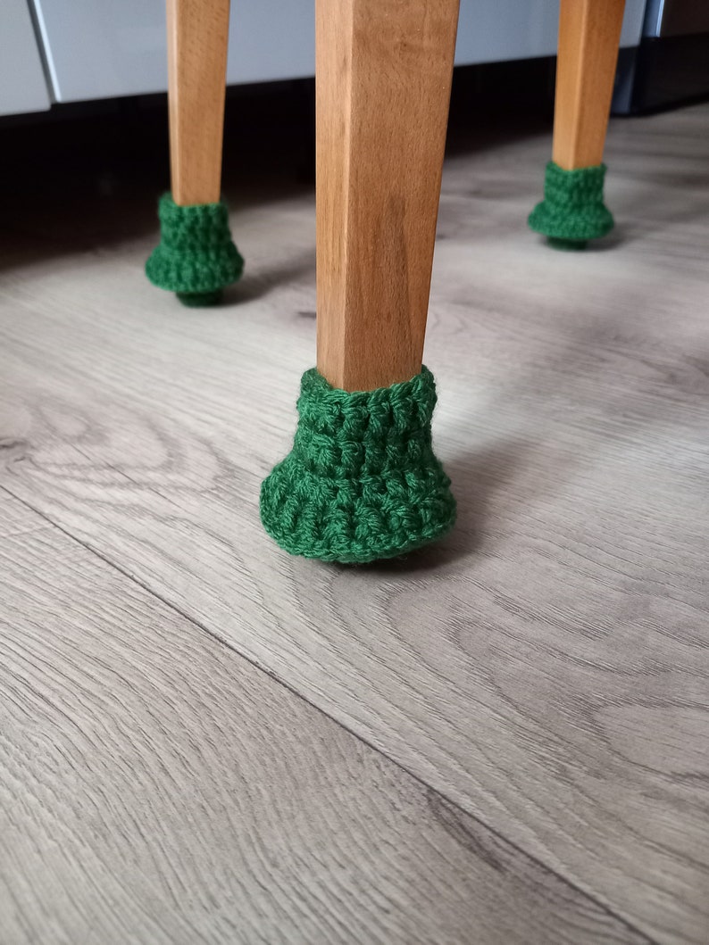Practical socks for chairs will protect the floor against scratches, they will also look great in the interior of the house, just like a home decor. These green socks, like Christmas trees in the forest, will decorate your home for Christmas.